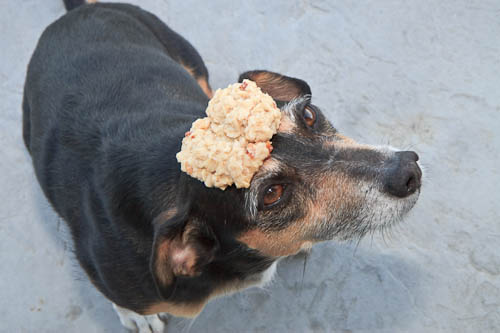 A few weeks ago the bosses went to see the movie UP. (In case you're wondering, they said the best part was the dogs. I say, duh!) At the start of the movie there was a preview for one called something like, Cloudy with a Chance of Meatballs. The boss ma'am, she loves me, and she knows that this is my kind of movie. She told me that it looked to be about a scientist who is able to turn water into food. In the preview, she said, it rains hamburgers! And pancakes! And meatballs! Oh, be still my tail!